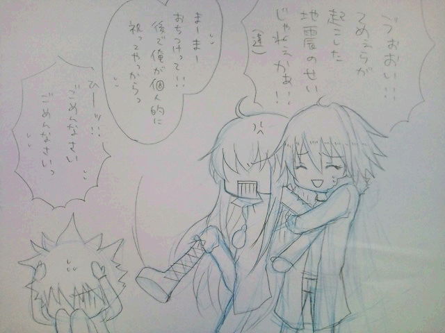 2011/03/13 Category : 携帯から 生きています みなさま地震、大丈夫でしたでしょうか?私の所は丸一日停電していたりしましたが、無事に生きております。春コミですが、現在開催に向けて調整中とのアナウンスが公式より発表されております。私としても極力参加したい思いではありますが、北東北在住の為交通機関の状況によっては不参加の可能性もございます。その場合、お取り置きの申し込みを頂いた方には大変申し訳ありませんが通販のご案内を送らせていただく対策をとらせていただきます。ご迷惑おかけして申し訳ありません。私もぎりぎりまで行くつもりでコピー本の原稿をやってみようと思います…